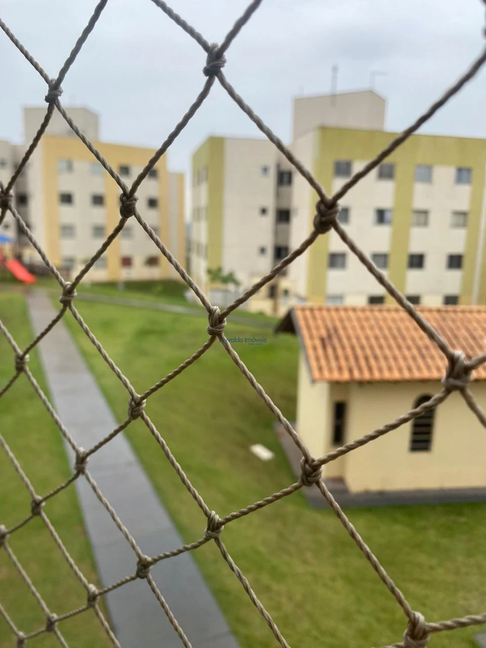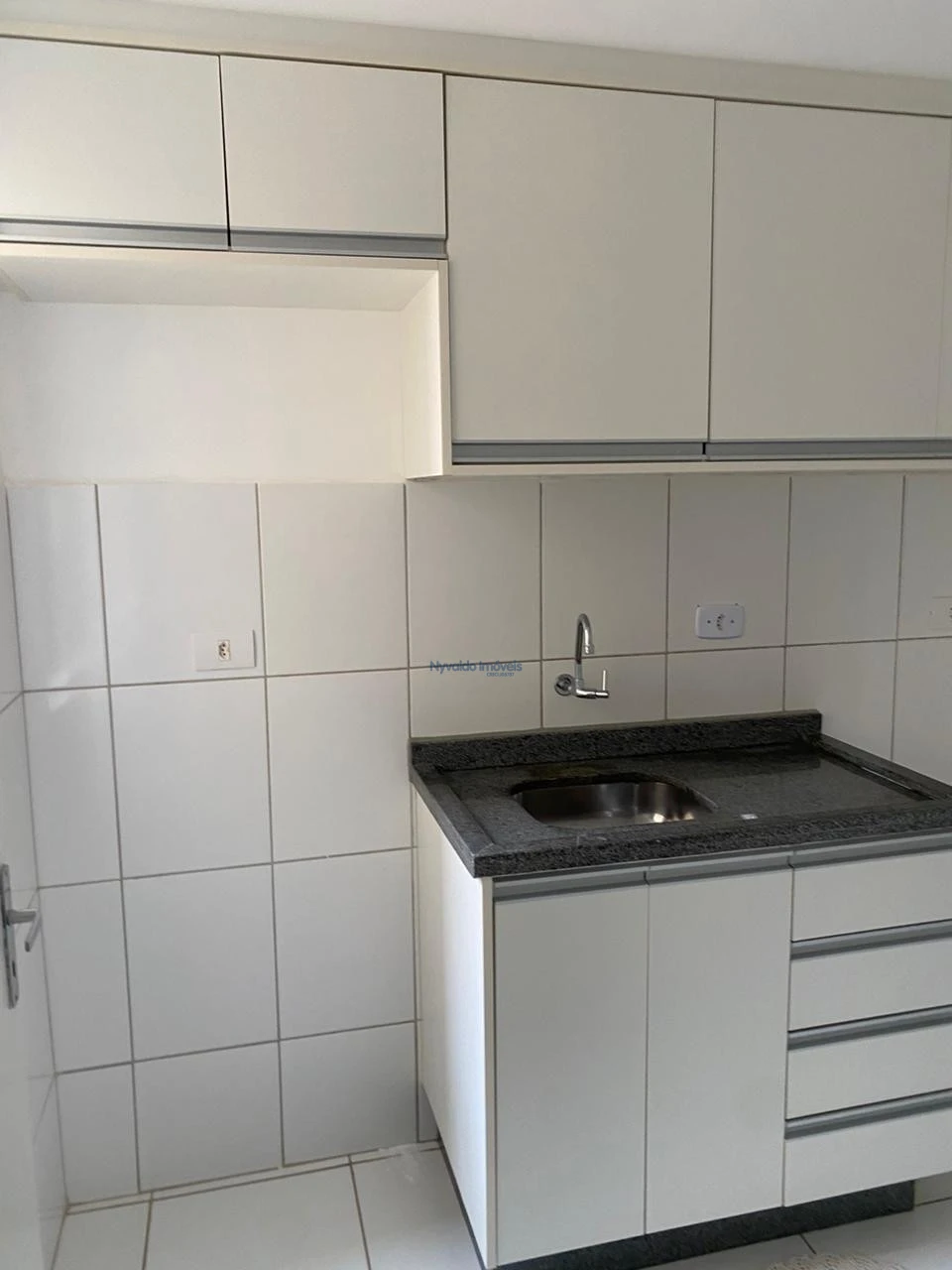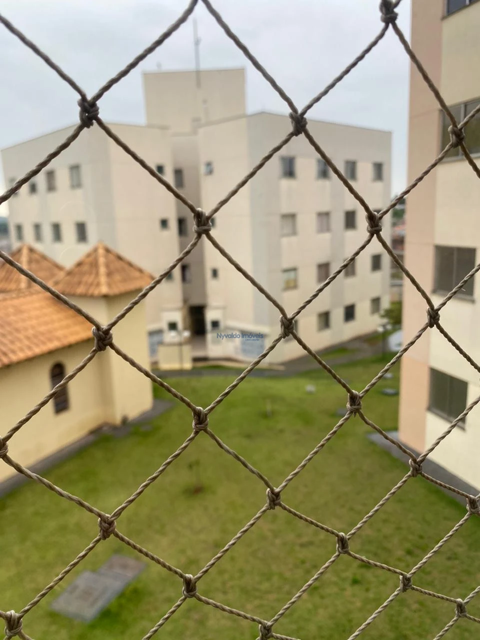 Apartamento no 1° andar com dois dormitórios, sala, cozinha com balcão e armários, banheiro com armário e box, todas as janelas com tela de proteção, uma vaga de garagem.