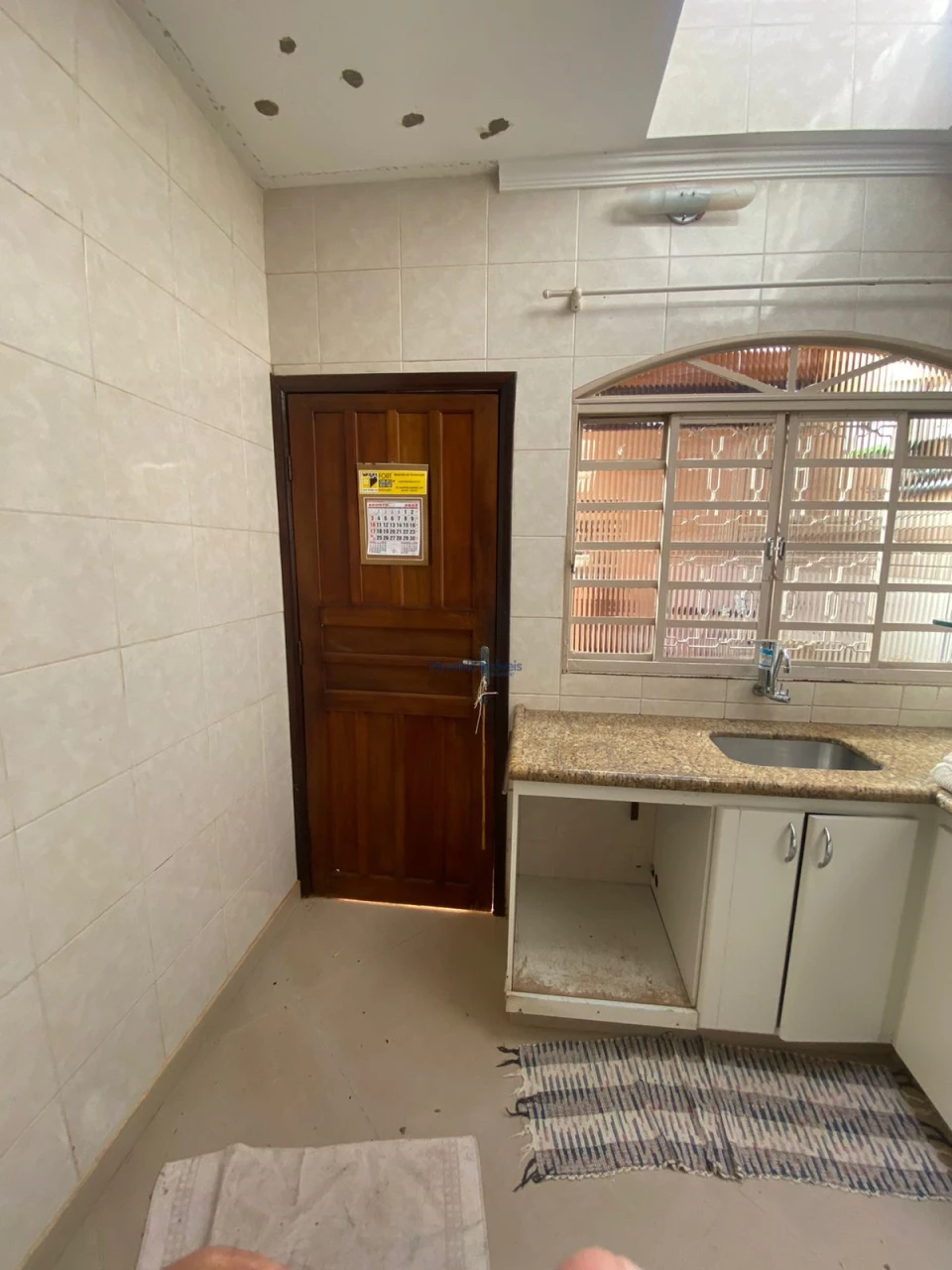 Edícula com área de serviços, cozinha, churrasqueira e banheiro externo,  garagem para três carros pequenos e duas vagas para carros maiores.