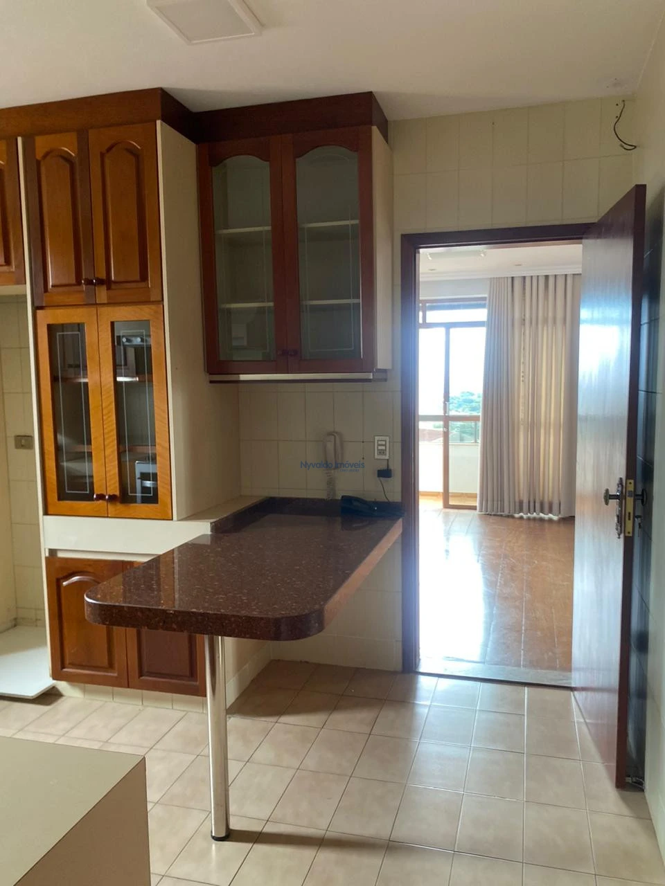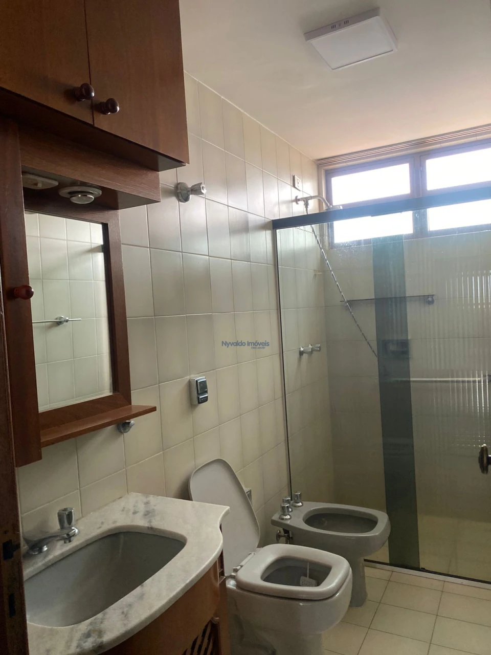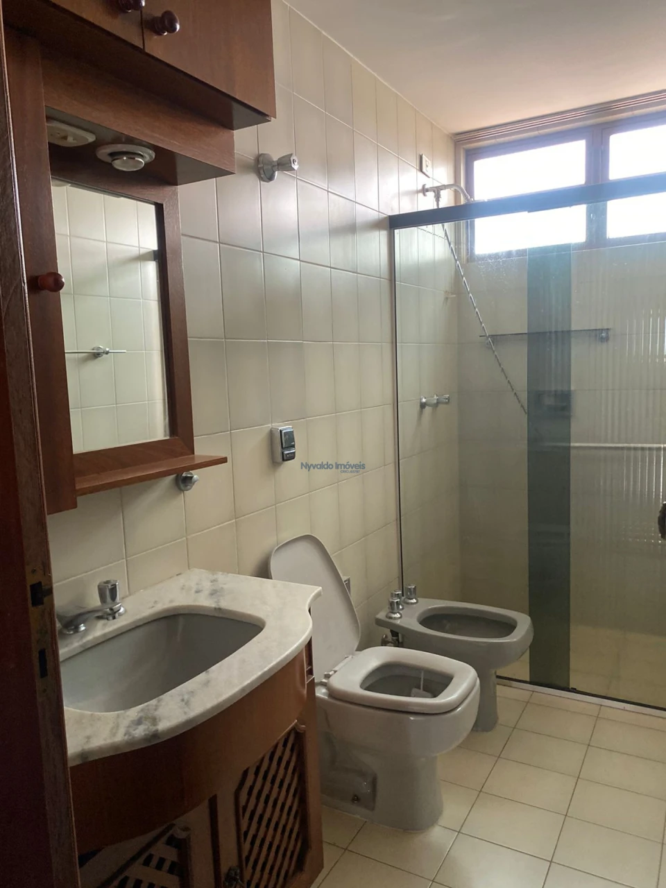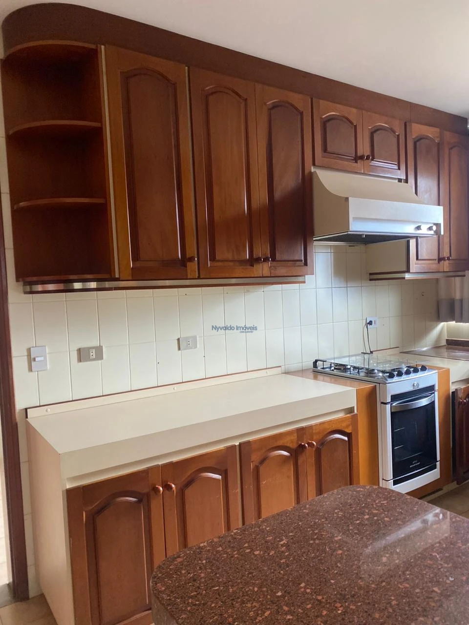 Apartamento com ampla sala, duas sacadas, frente para a Rua Padre Vitoriano Valente, vista para o lado Norte, com lavabo, três dormitórios, sendo duas suítes, uma com banheira de hidromassagem, todos os banheiros com box, chuveiros, duchas e armários, sala de tv com estante, banheiro social, cozinha com balcão, pia, armários, fogão e exaustor, área de serviços com armários e banheiro.