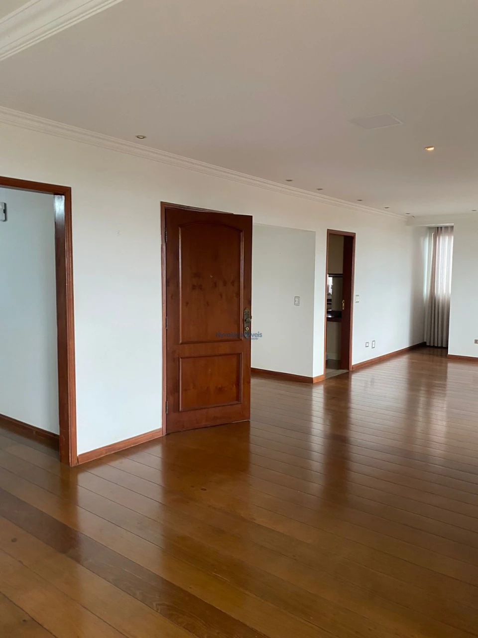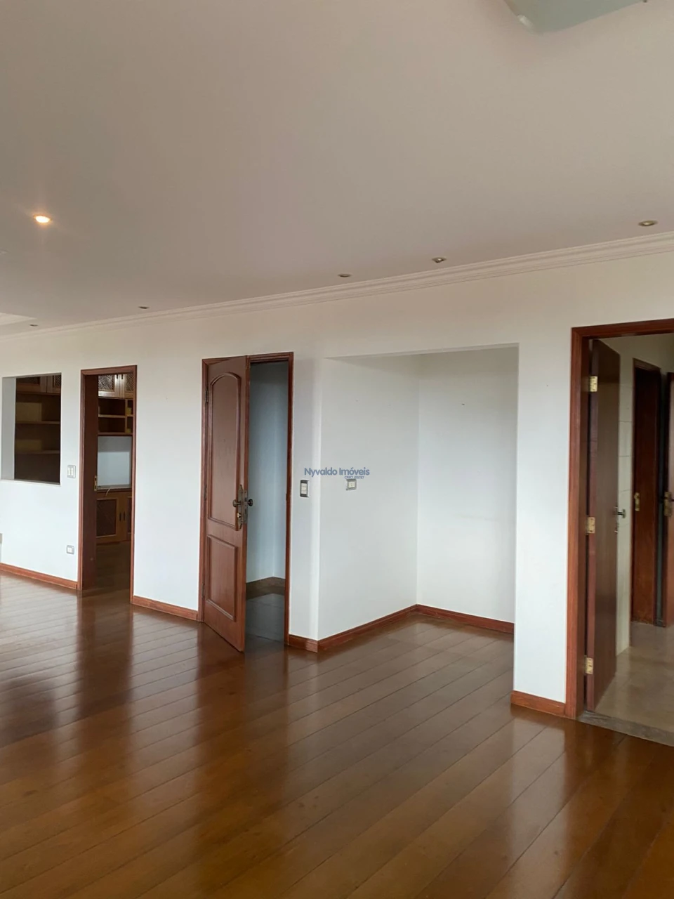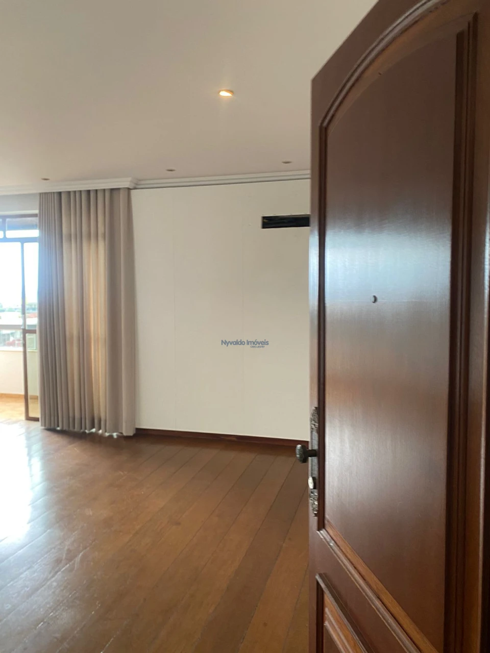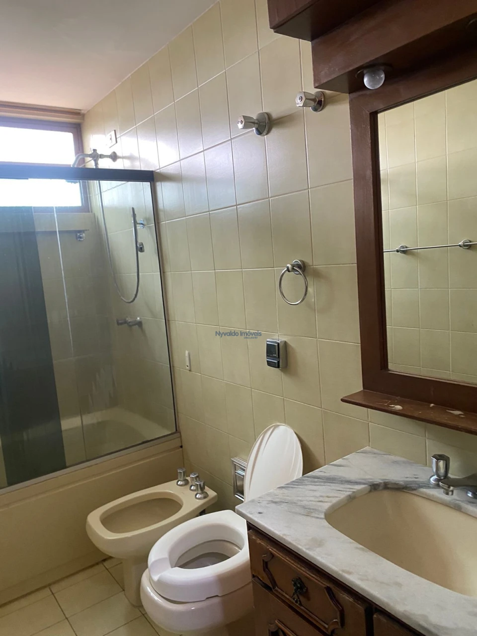 Apartamento com ampla sala, duas sacadas, frente para a Rua Padre Vitoriano Valente, vista para o lado Norte, com lavabo, três dormitórios, sendo duas suítes, uma com banheira de hidromassagem, todos os banheiros com box, chuveiros, duchas e armários, sala de tv com estante, banheiro social, cozinha com balcão, pia, armários, fogão e exaustor, área de serviços com armários e banheiro.