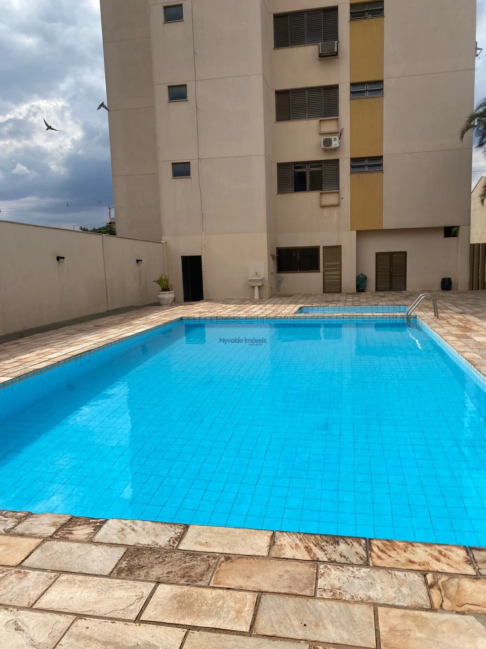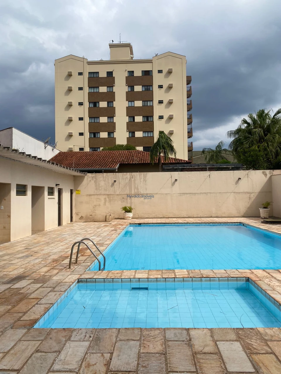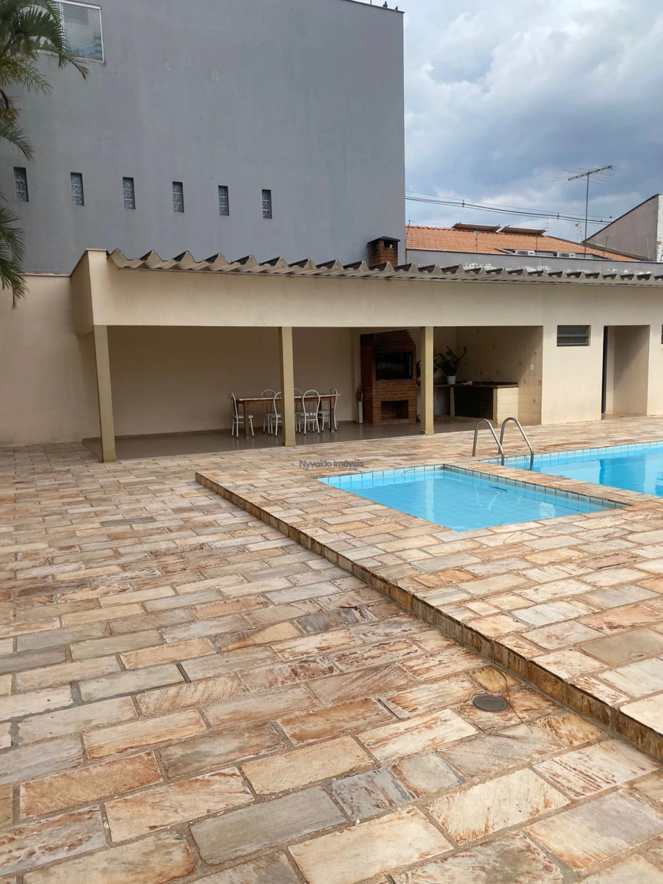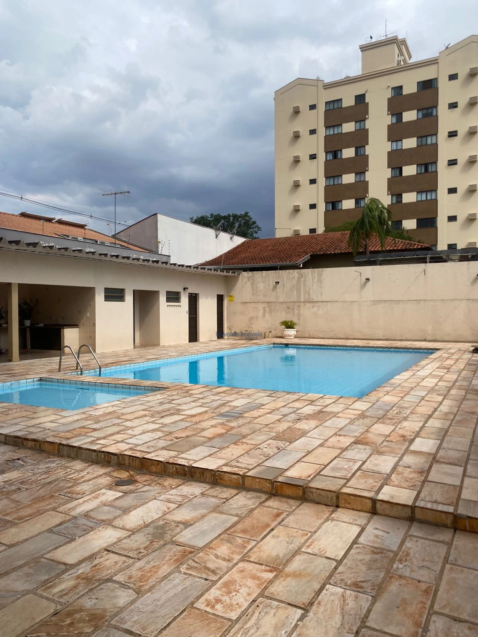 Área de lazer com pisicna, churrasqueira e banheiros. Elevadores social e serviços.