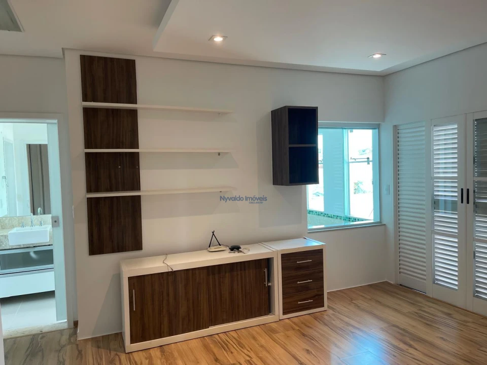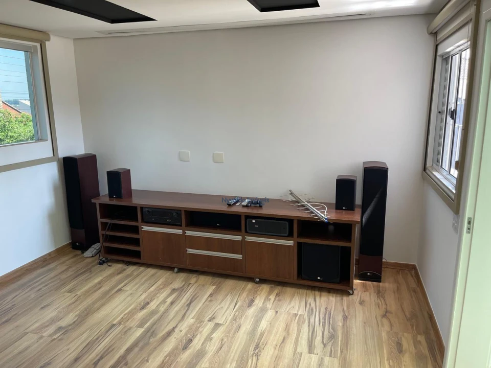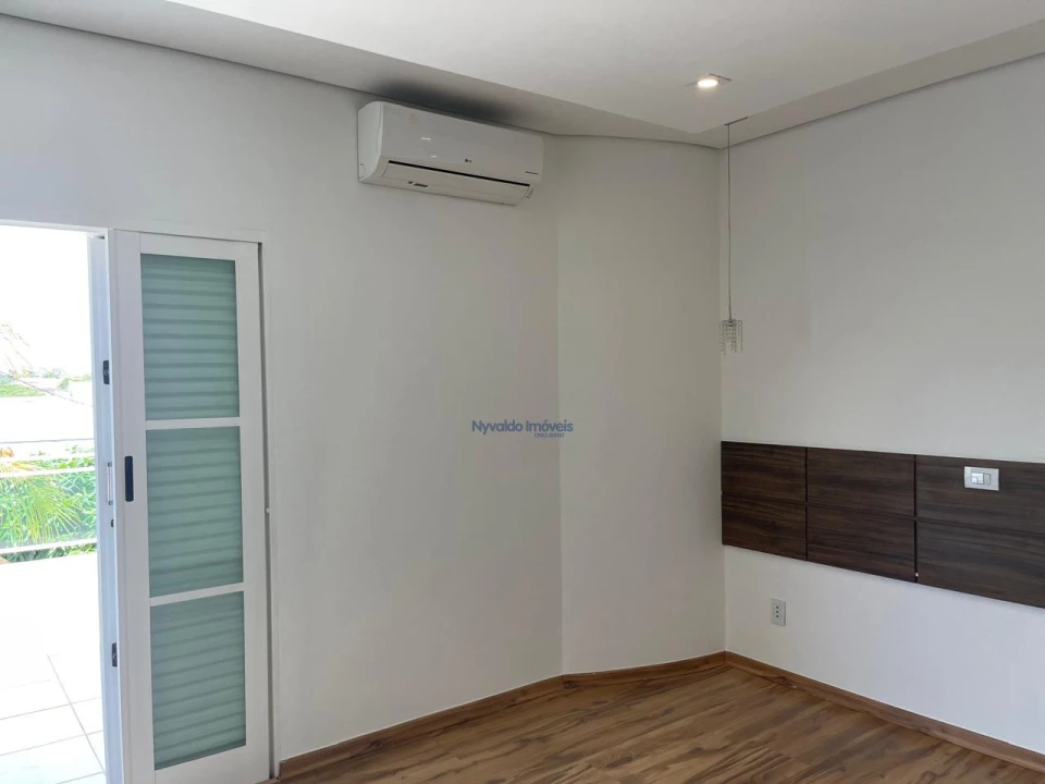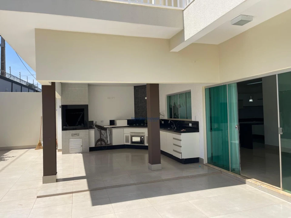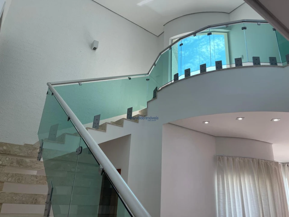 Sobrado com escritório, sala de TV, sala de estar, sala de cinema (apenas com projetor e som, sem as poltronas), sala de jantar, uma suíte e mais dois dormitórios, cozinha, banheiro social, área de serviço, despensa e sacada nos dois lados da casa. Churrasqueira, banheiro externo e garagem.