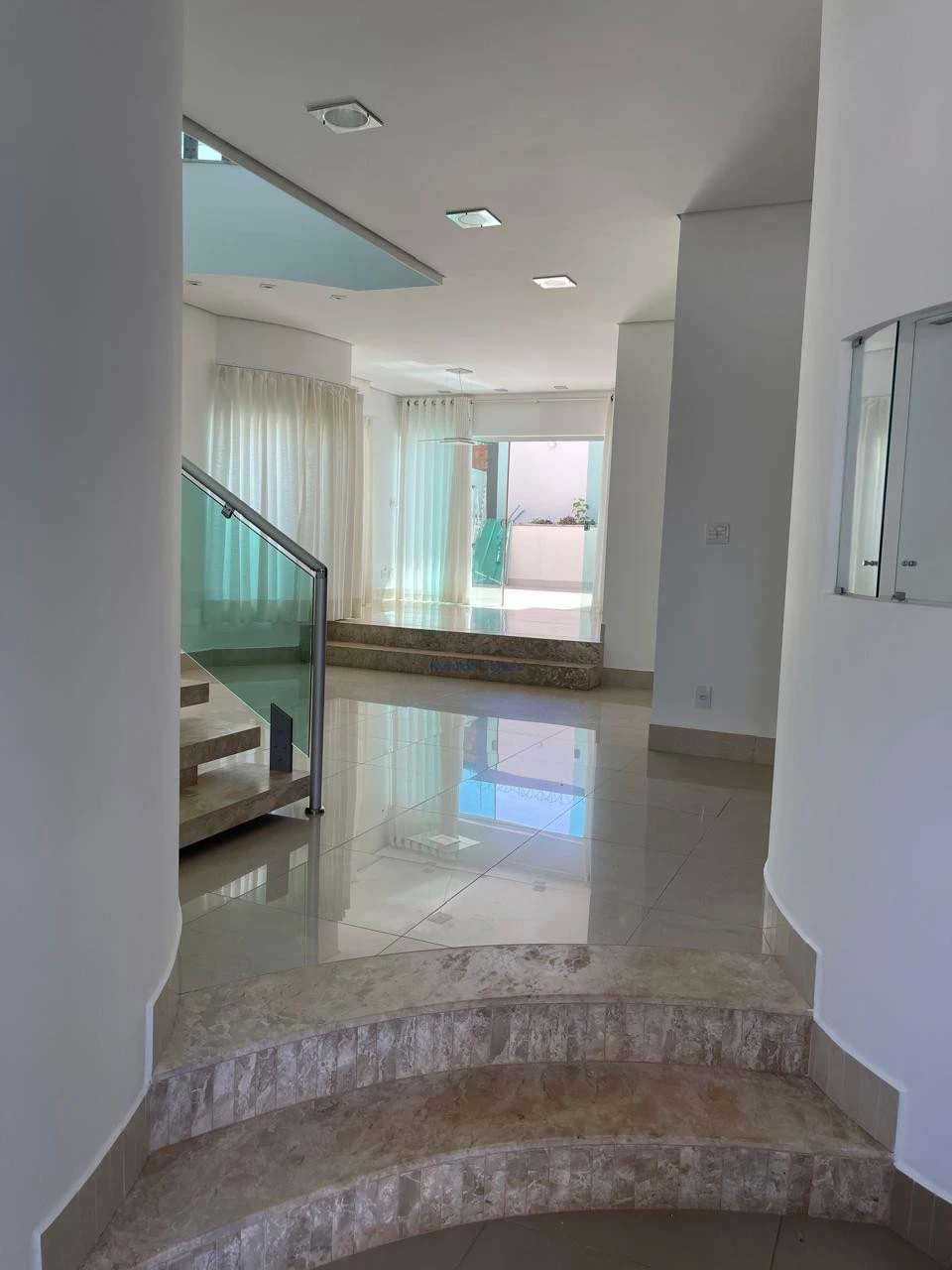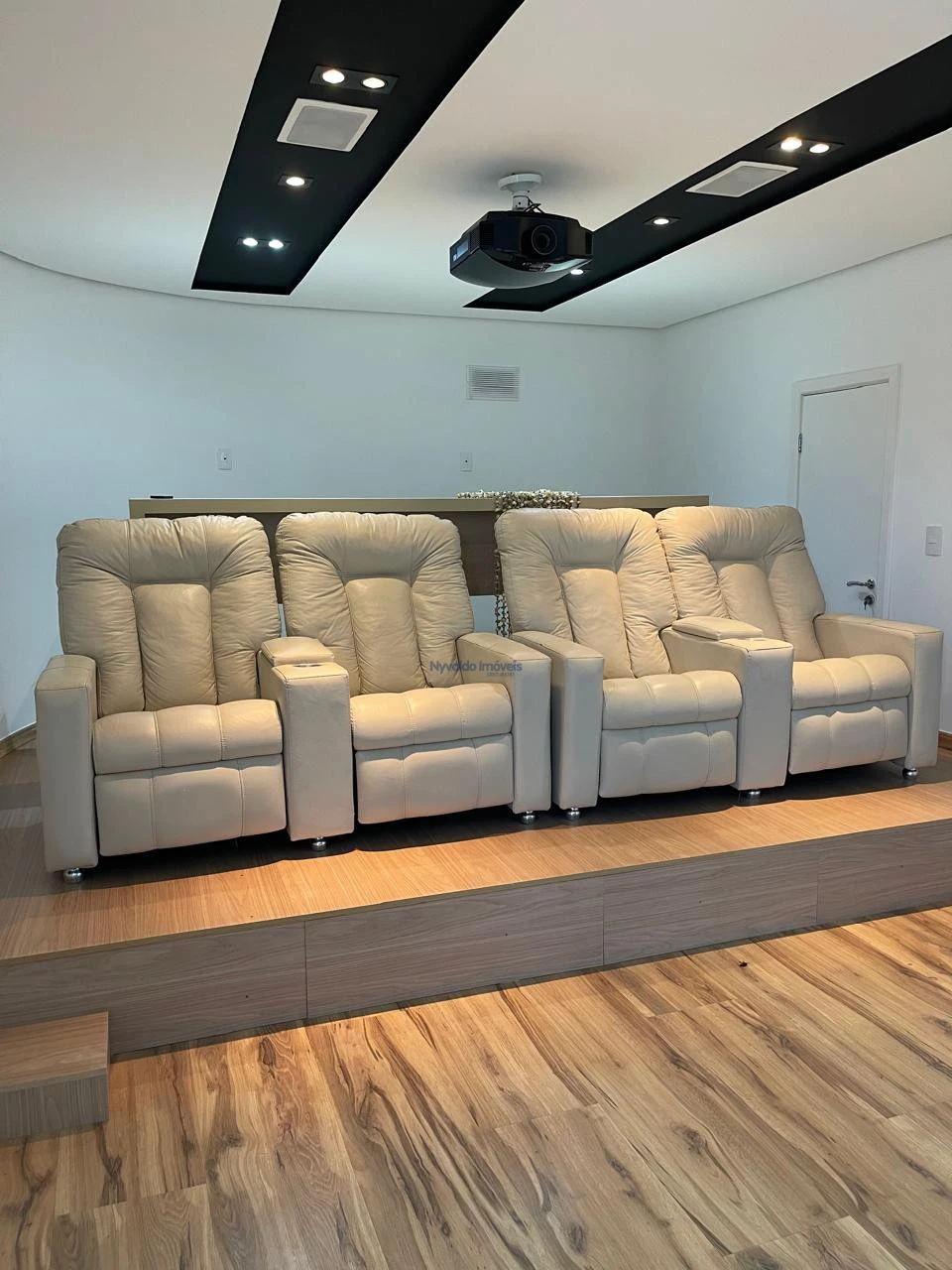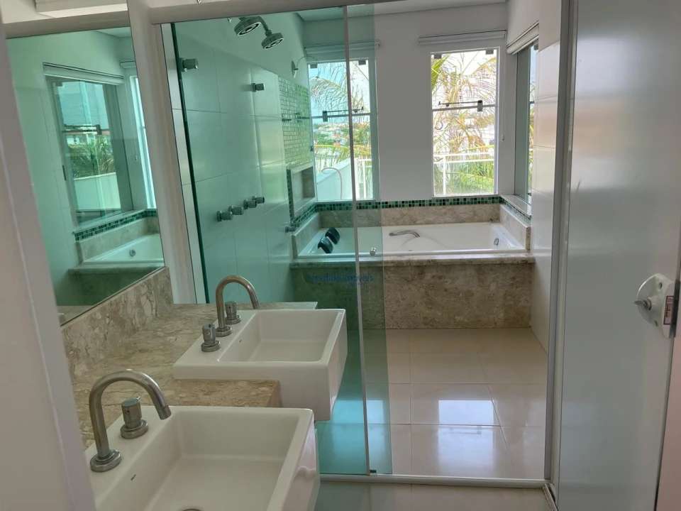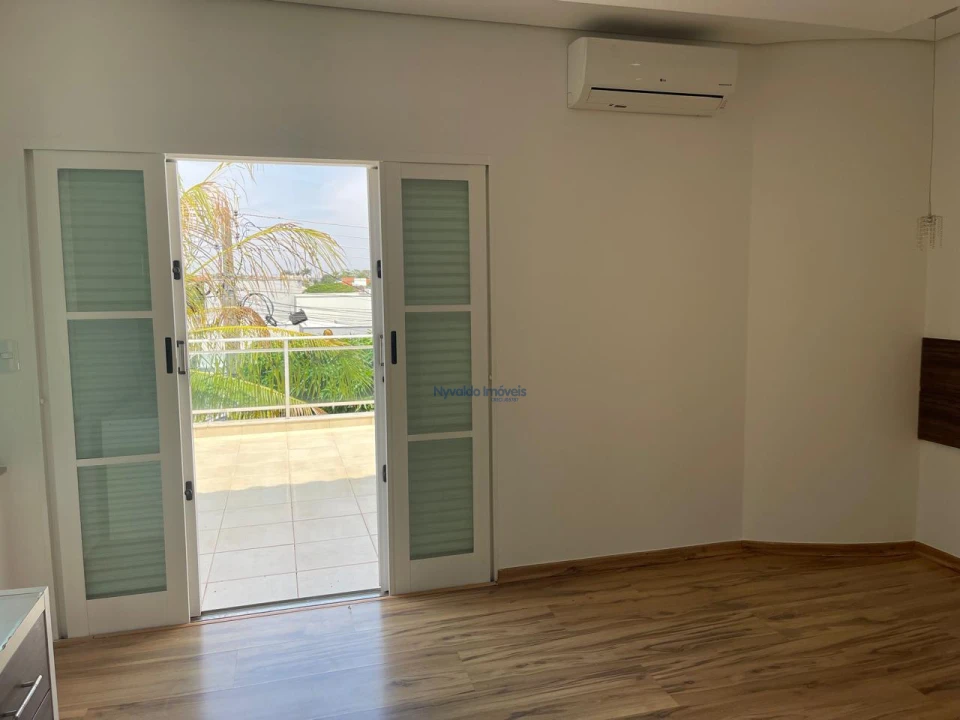 Sobrado com escritório, sala de TV, sala de estar, sala de cinema (apenas com projetor e som, sem as poltronas), sala de jantar, uma suíte e mais dois dormitórios, cozinha, banheiro social, área de serviço, despensa e sacada nos dois lados da casa. Churrasqueira, banheiro externo e garagem.