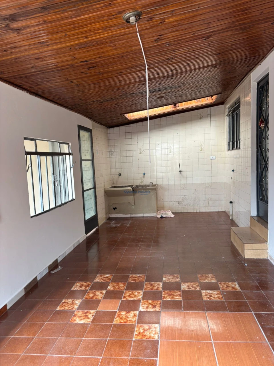 Casa em alvenaria, de forro, com dois dormitórios, sala, cozinha, banheiro, área de serviços e garagem descoberta.
