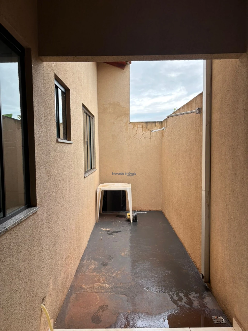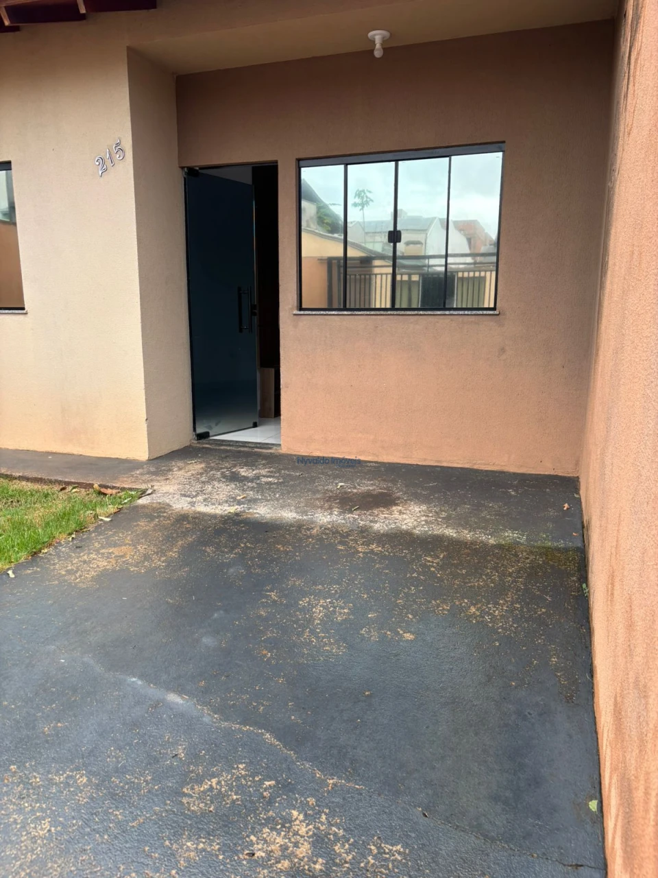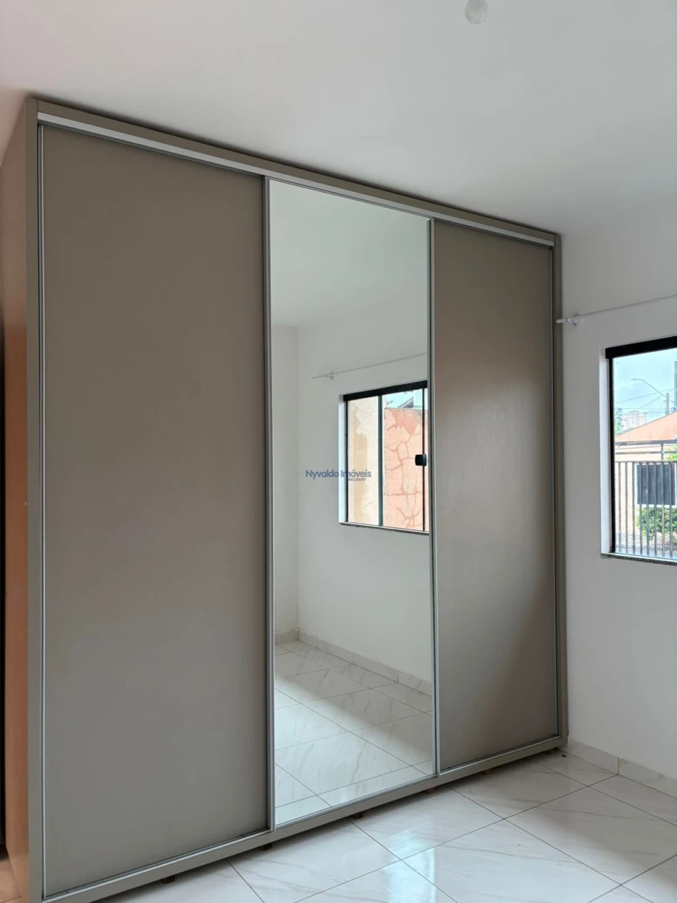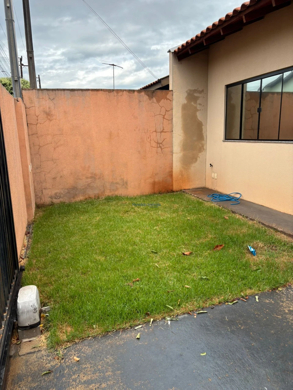 Casa em alvenaria de laje, piso cerãmico, dois quartos um com armário, sala com painel, cozinha com armários, lavanderia, garagem para um carro.