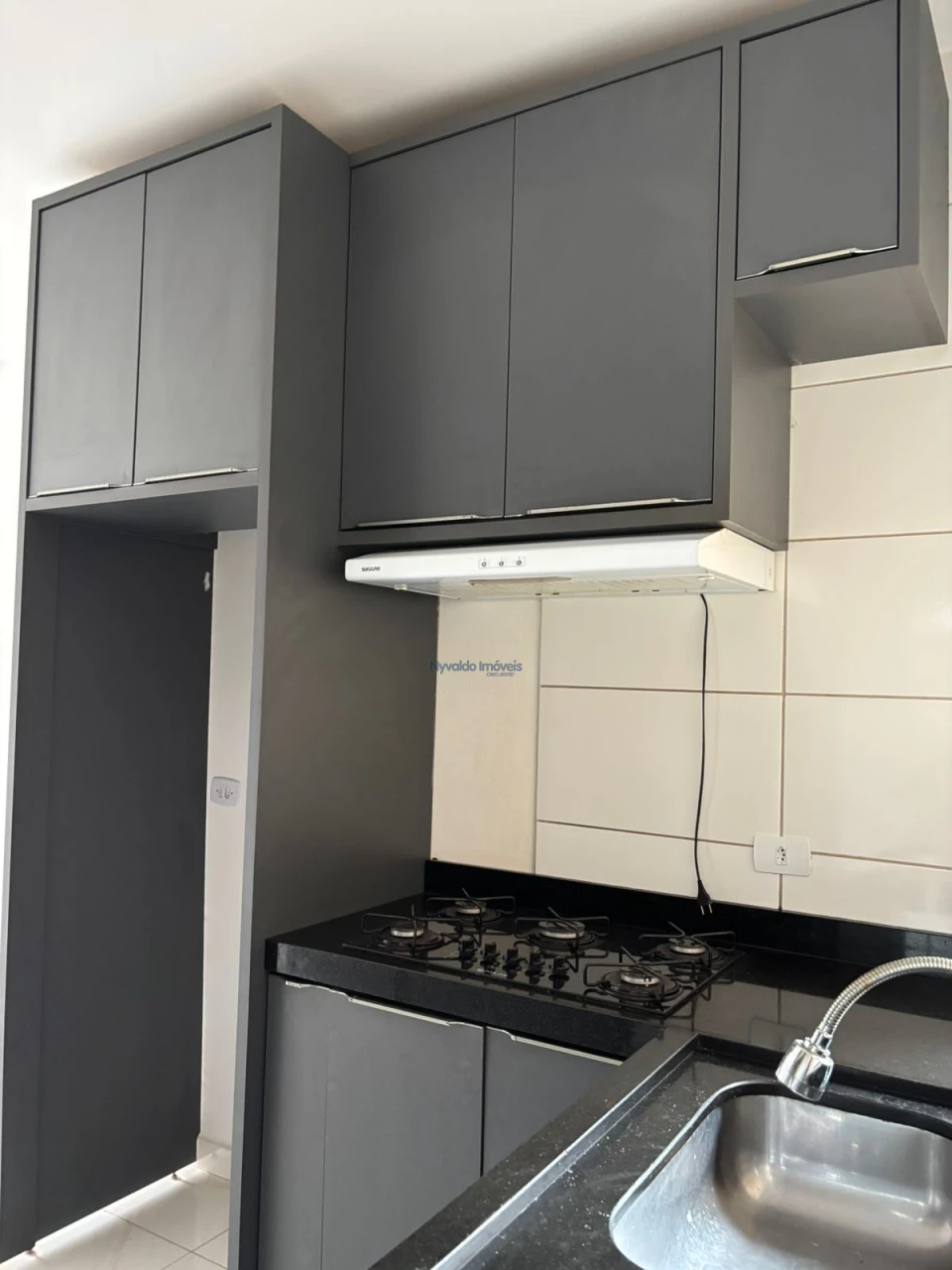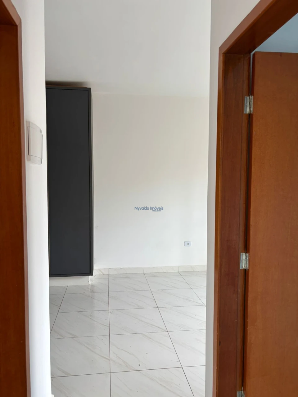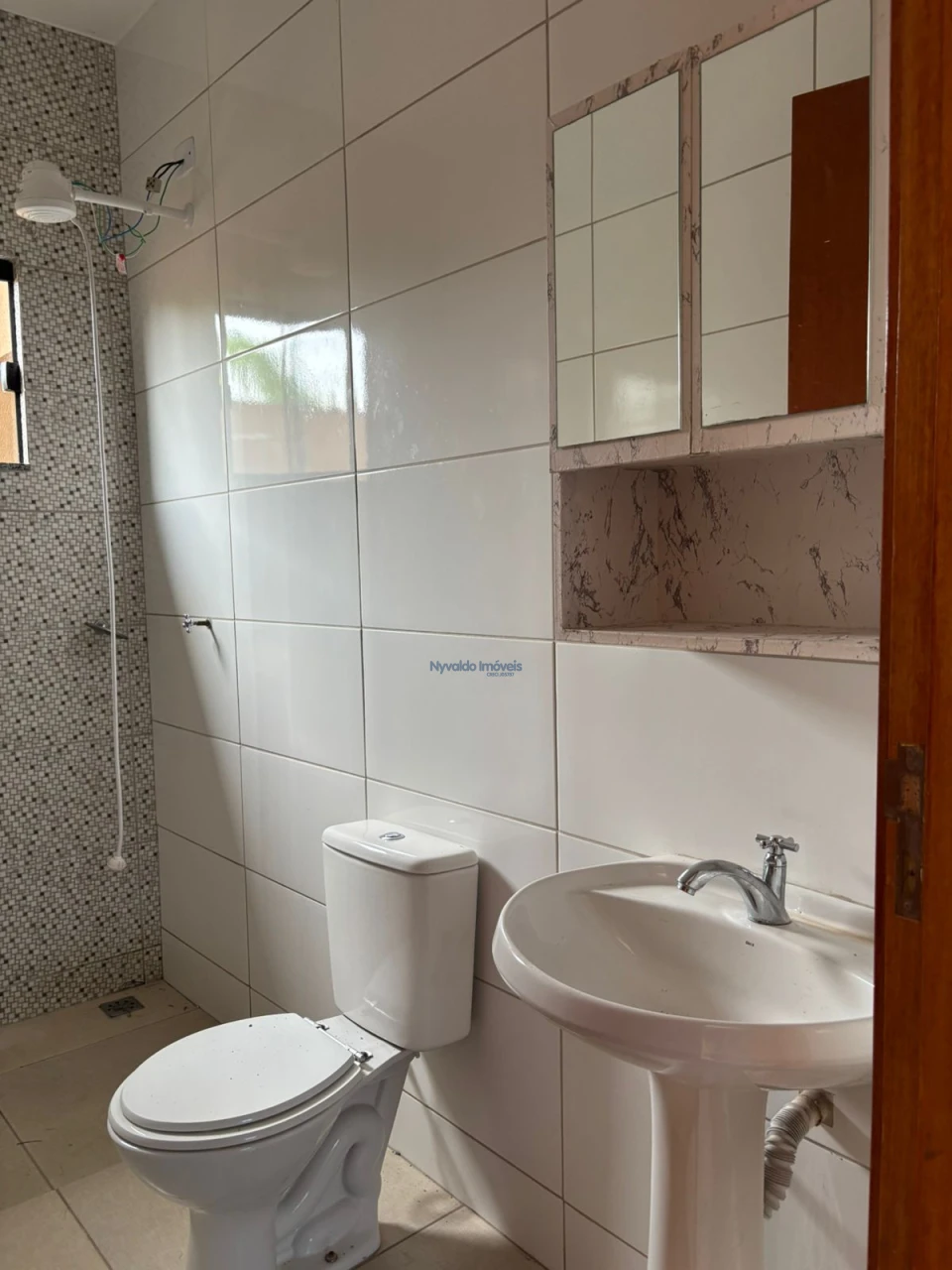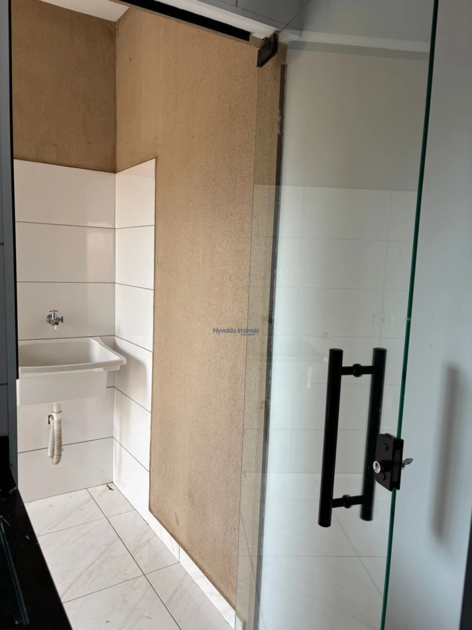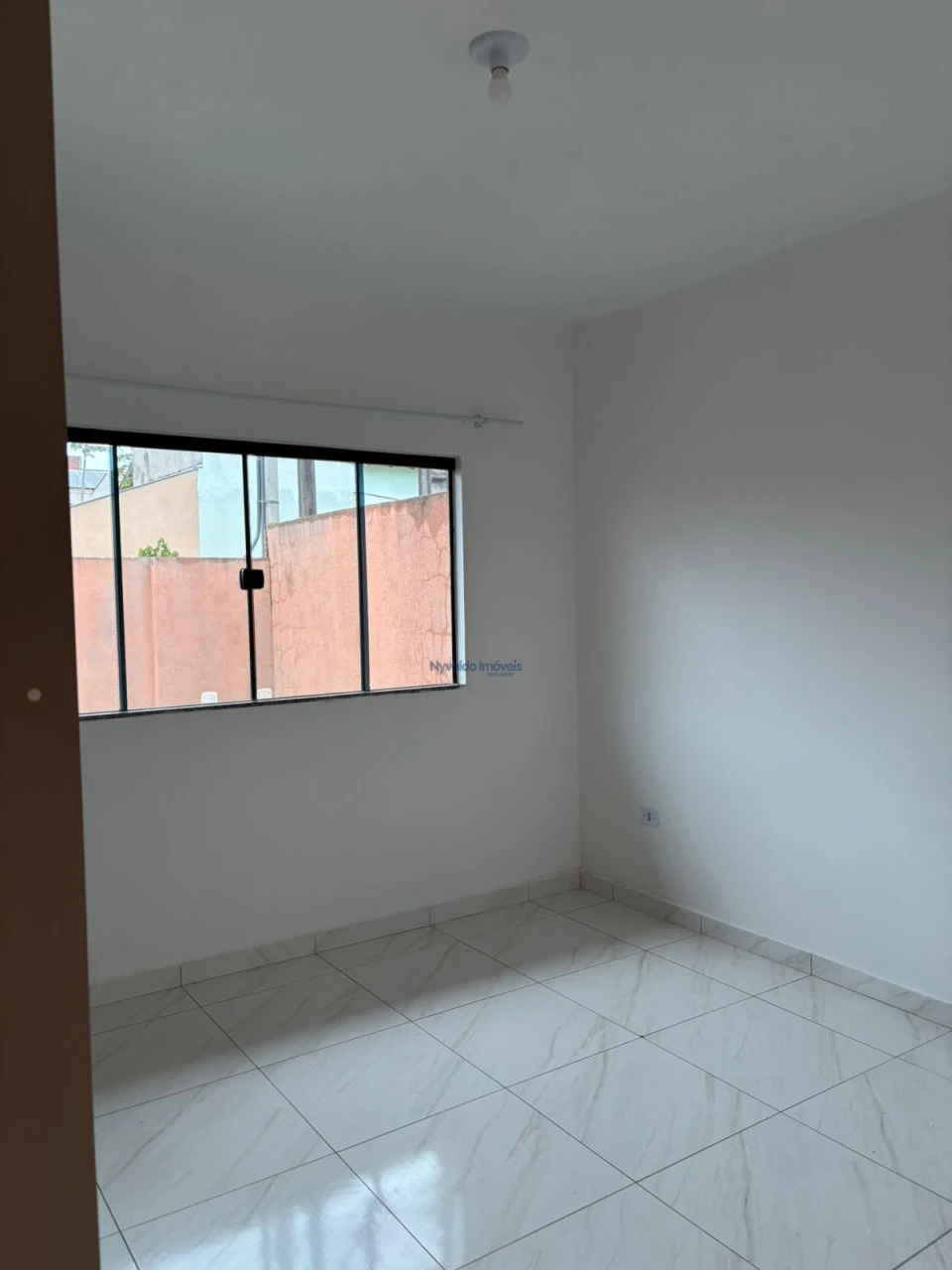 Casa em alvenaria de laje, piso cerãmico, dois quartos um com armário, sala com painel, cozinha com armários, lavanderia, garagem para um carro.